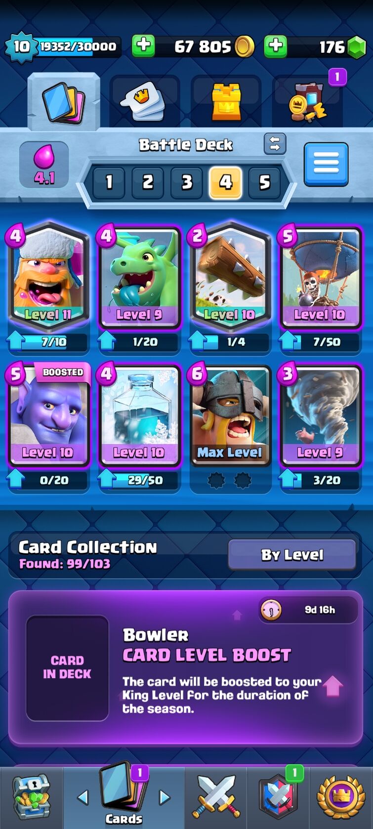 Its nooby but it works in tgat range. I started my second account around 1 month ago and it is a level 6 with 6410 level cards I. I started my first account when the apk first came out for android.